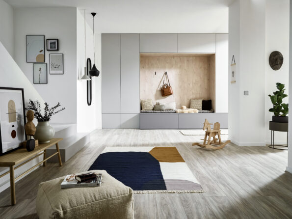 Acryllaminat RAUVISIO brilliant ističe aktuelne trendove u dizajnu nameštaja i uređenju stambenog prostora. Zahvaljujući svom blistavom dubinskom efektu RAUVISIO zamenjuje sjajne, visoko kvalitetne lakirane elemente u dizajniranju površina i omogućava izuzetan dizajn kod površinskih obloga na vertikalnim frontovima nameštaja. Površinski materijal sadrži brojne prednosti: Akrilni laminat je trajno otporan na UV zračenje – kod upotrebe u zatvorenom prostoru dokazano za period najmanje 20 godina. Osim toga, svestrana površina pokazuje izvanredni kvalitet boje i sjaja i može se skratiti na dimenzije pomoću svih uobičajenih alata za obradu drveta. Dodatna sloboda u dizajnu se dobija zahvaljujući jednostavnom savijanju i kantovanju materijala, tako da se može dovesti u skoro bilo koji oblik.
